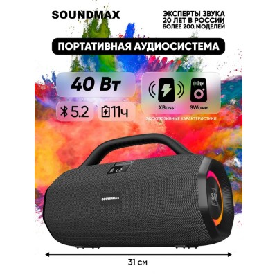 покрытие > Электроника > Наушники и аудиотехника > Беспроводная колонка портативная SOUNDMAX стерео SM-PS5033B 40 ватт 6000 мАч Bluetooth TWS акустика саундмакс блютуз бумбокс