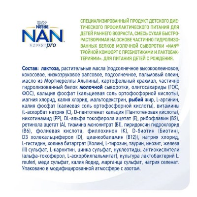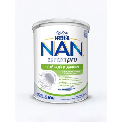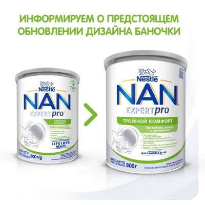 Сухая быстрорастворимая смесь на основе частично гидролизованных белков молочной сыворотки НАН Тройной комфорт с пребиотиками и лактобактериями. 800г