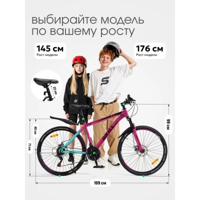 Велосипед Skill Bike взрослый скоростной горный, колеса 26 дюймов, рама 17 дюймов, 21 скорость, розовый/мятный